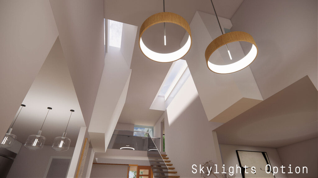 Carefully placed skylights bring filtered light into the main space as well as the primary bath.
